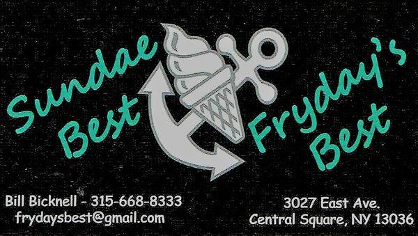 Sundae & Fryday's Best is an ice cream stand and fish serving Central New York favorites and exciting new specials. Sundae Best is open 7 days a week in the summer months. Fryday's Best is open Thursdays and Fridays from February until November.