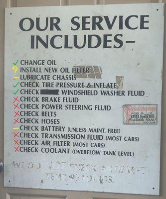 Service was good BUT: On my way home I noticed that they failed to put an oil change sticker on the upper left side of my windshield. Also, I had supplied a $5 coupon. They took off $5 but...