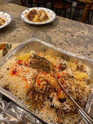 Variety of dishes for buffet that includes veggie and meat options with grilled as well as curry items, delicious food, and great service.
